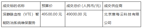 湛江中心人民医院深静脉血栓(VTE)智能防治系统维保服务项目采购成交结果公示