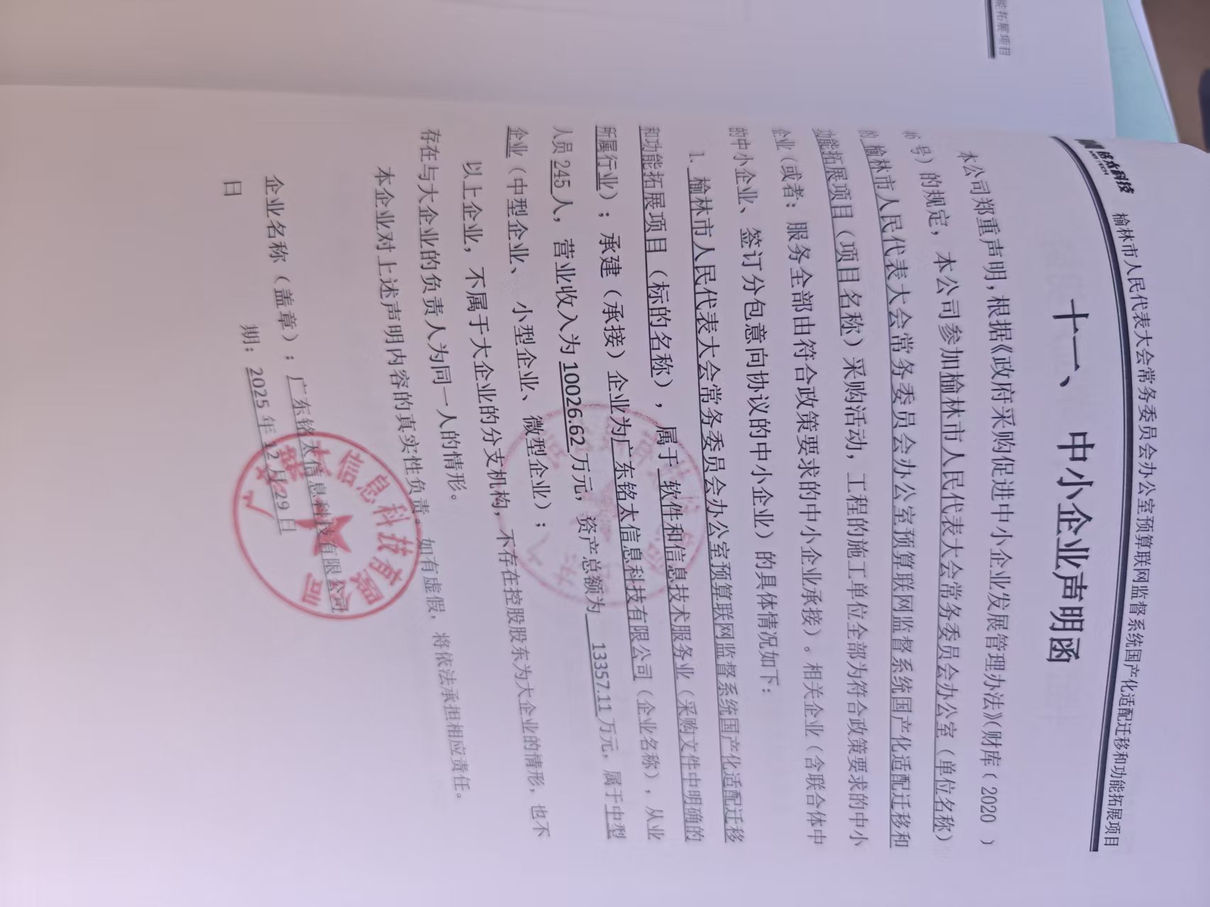 中小企业声明函.jpg ******办公室预算联网监督系统国产化适配迁移和功能拓展项目.pdf